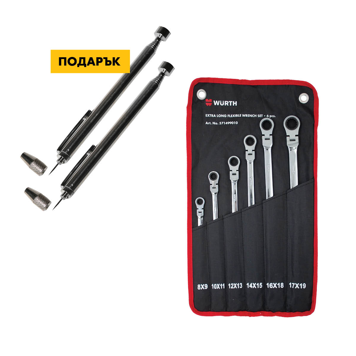 К-т тресчотни кл. 6 бр.+Телескопичен магнит Wurth
