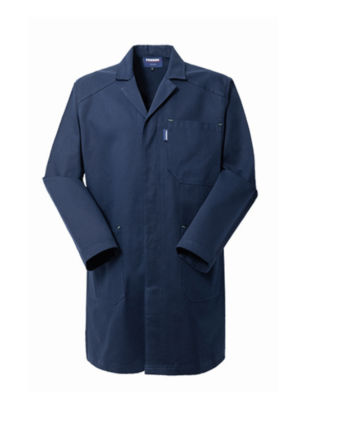 Дълга работна мантия с покрити копчета и централно закопчаване. Изработена от 100% несвиваем памук и контрастиращи цветни ленти.
